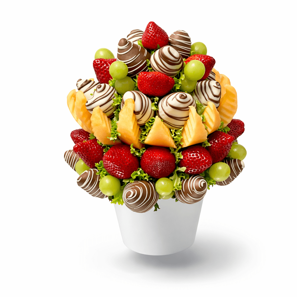 V kytici nájdete šťavnaté jahody, sladké hrozno, voňavý melón a jahody máčané v jemnej čokoláde s dekoratívnym zdobením. Každý kus je starostlivo pripravený tak, aby vytváral harmonickú a luxusnú kompozíciu.